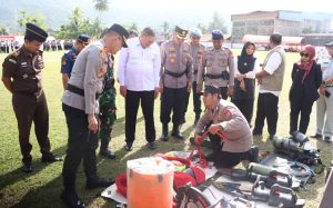 Kapolres Aceh Selatan AKBP T. Ricki Fadlianshah, S.I.K. mengecek kesiapan peralatan