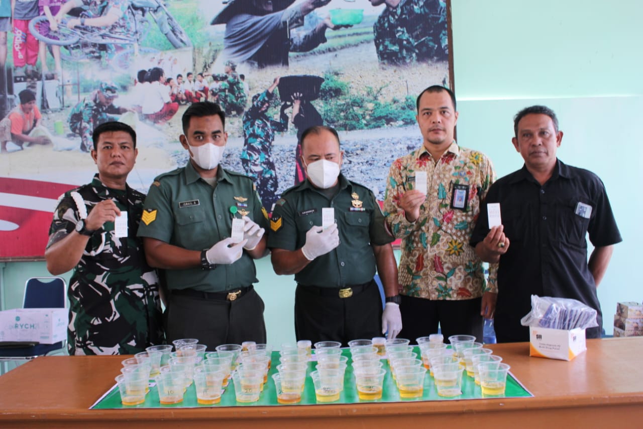 “Dengan adanya sosialisasi atau kegiatan tes urine ini, diharapkan mampu mengoptimalkan daya tangkal prajurit TNI dan PNS khususnya jajaran Kodim 0107/Aceh Selatan beserta keluarganya terhadap bahaya peredaran dan penyalahgunaan narkoba,”ujarnya.