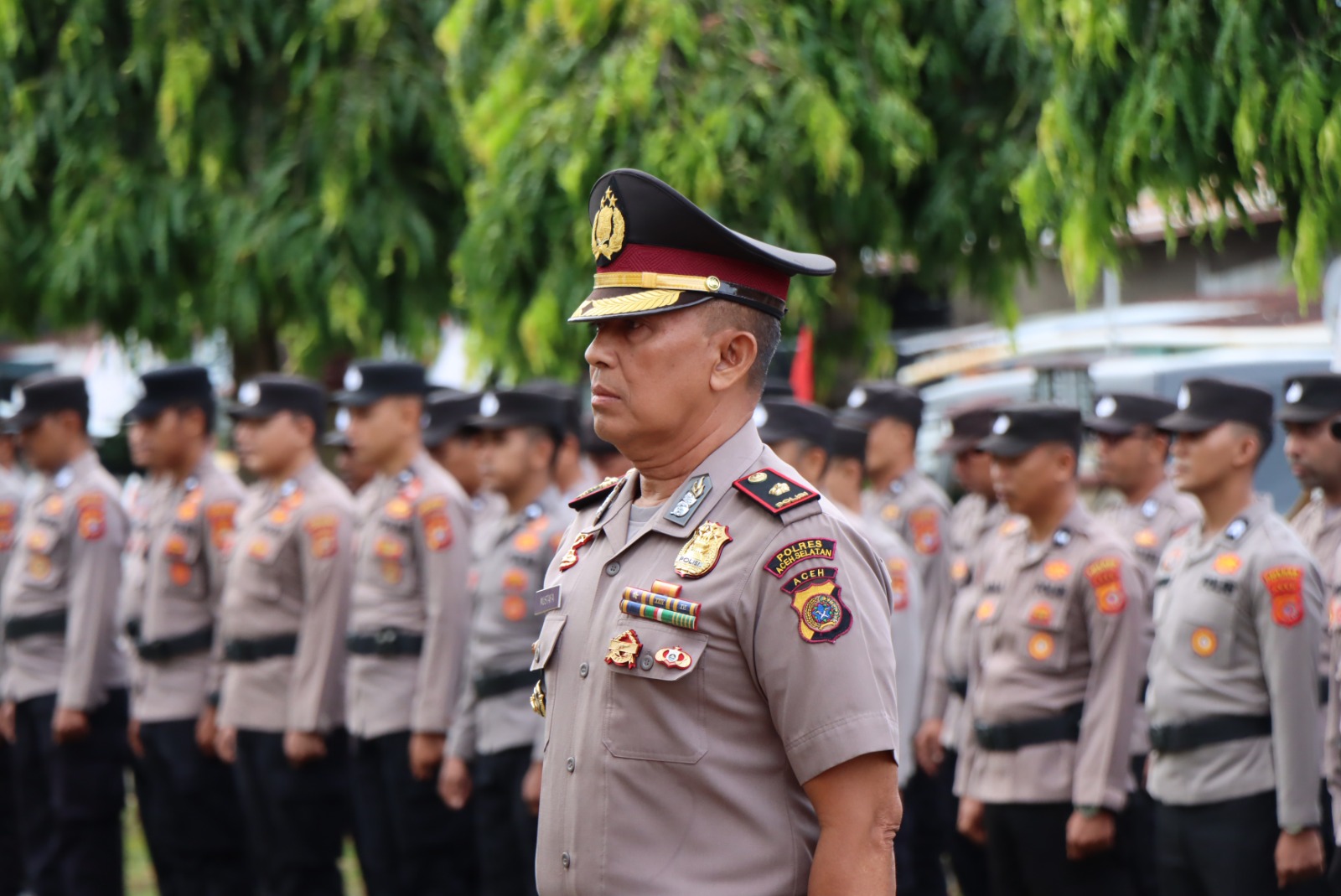 KBBAceh.News | Tapaktuan – Polres Aceh Selatan Polda Aceh melaksanakan upacara laporan kenaikan pangkat pengabdian yang dilaksanakan di Lapangan Apel Mapolres Aceh Selatan. Upacara yang dipimpin langsung oleh Kapolres Aceh Selatan AKBP T. Ricki Fadlianshah, S.I.K, ini diikuti oleh Wakapolres Kompol Edwin Aldro, S.H.,M.H., pejabat utama, serta seluruh personel Polri dan ASN Polres Aceh Selatan, Senin, 1 September 2025.
